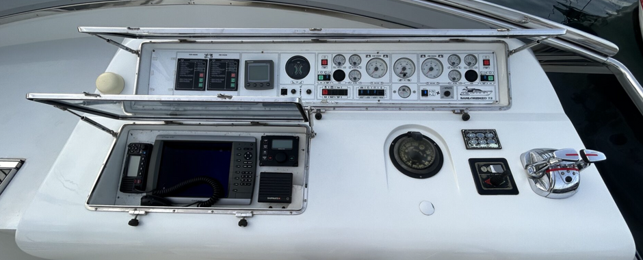 This SANLORENZO 72 is without doubt the finest and one of the most recent examples ofthe Sanlorenzo SL72 Flybridge model on the market. She has had very little use and hasbeen professionally maintained by her permanent crew and an attentive owner.This SANLORENZO 72 comfortably sleeps 7 guests in 4 well-appointed cabins, one ofwhich can be converted into an office opening onto the hallway.The fine example boasts almost full options with a customised contemporary light-colouredwood interior with several material upgrades. Key features include powerful MAN engines for speeds around 24-27 knots, teak decks, large entertaining areas on the main deck and flybridge, and modern amenities like full galleys, air conditioning, and entertainment systems, often with unique custom finishes like oak and wenge. Full-beam aft master cabin with sofa and walk-in closet, private bathroom with shower and bidet. VIP cabin forward with bathroom with shower and bidet. Guest cabin on the port side, two twin beds, private bathroom with shower and bidet. Guest cabin on the port side, one twin bed, private bathroom with shower. Crew cabin, external access from the forward hatch, with two V-shaped beds and bathroom