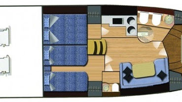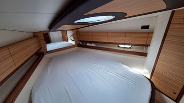 Powered by Volvo Penta D6 IPS 435 hp engines, this model features three cabins and two heads. Fully equipped: 220V generator, joystick control, bow thruster, air conditioning (hot and cold), cockpit table, transom door, double refrigerator (inside and outside), bimini and winter cockpit cover, Garmin plotter and Radar.