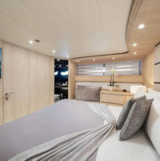 On the flybridge, guests can enjoy a second dining area along with spacious sunbathing areas, perfect for relaxing and enjoying panoramic sea views.